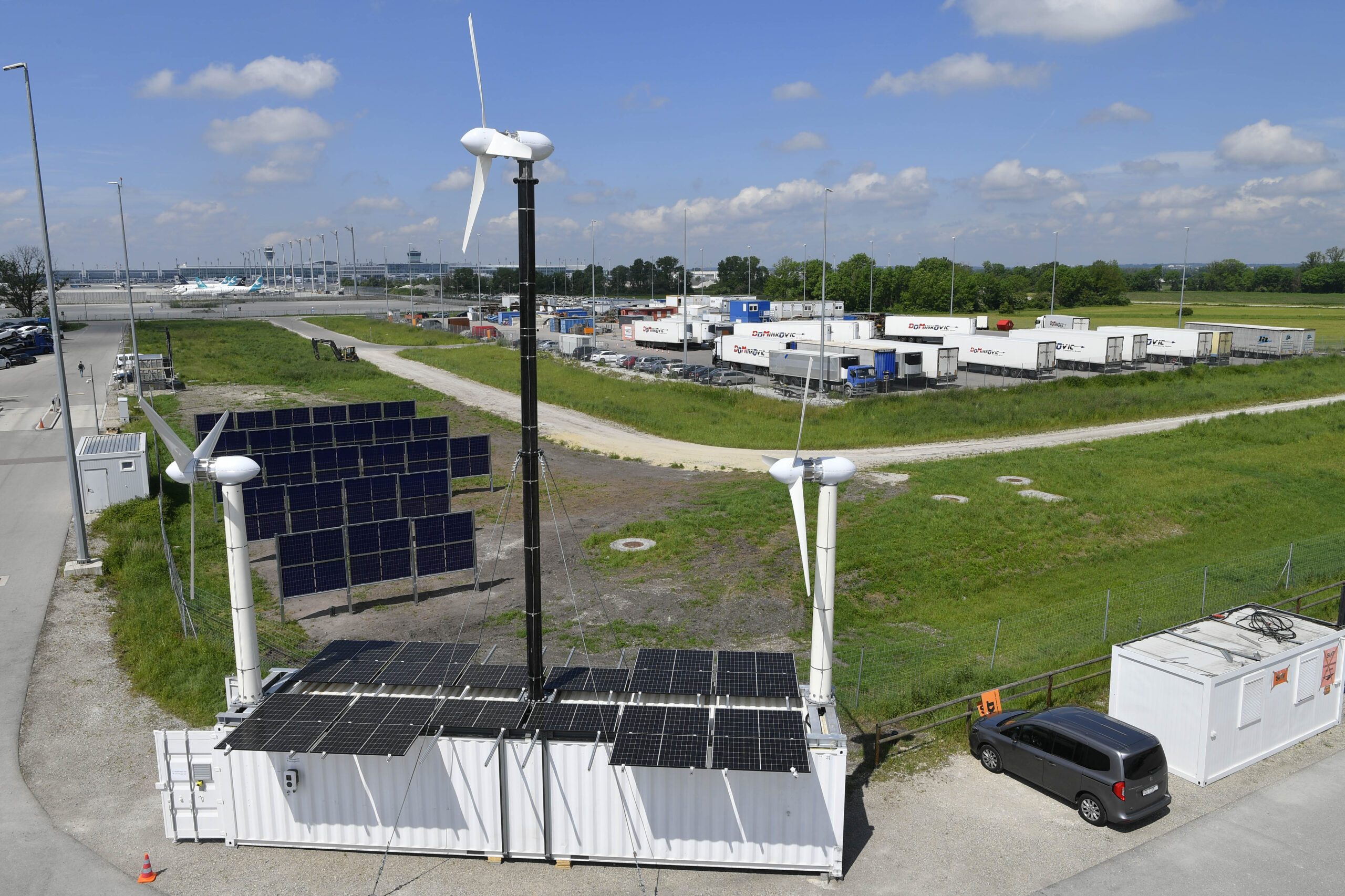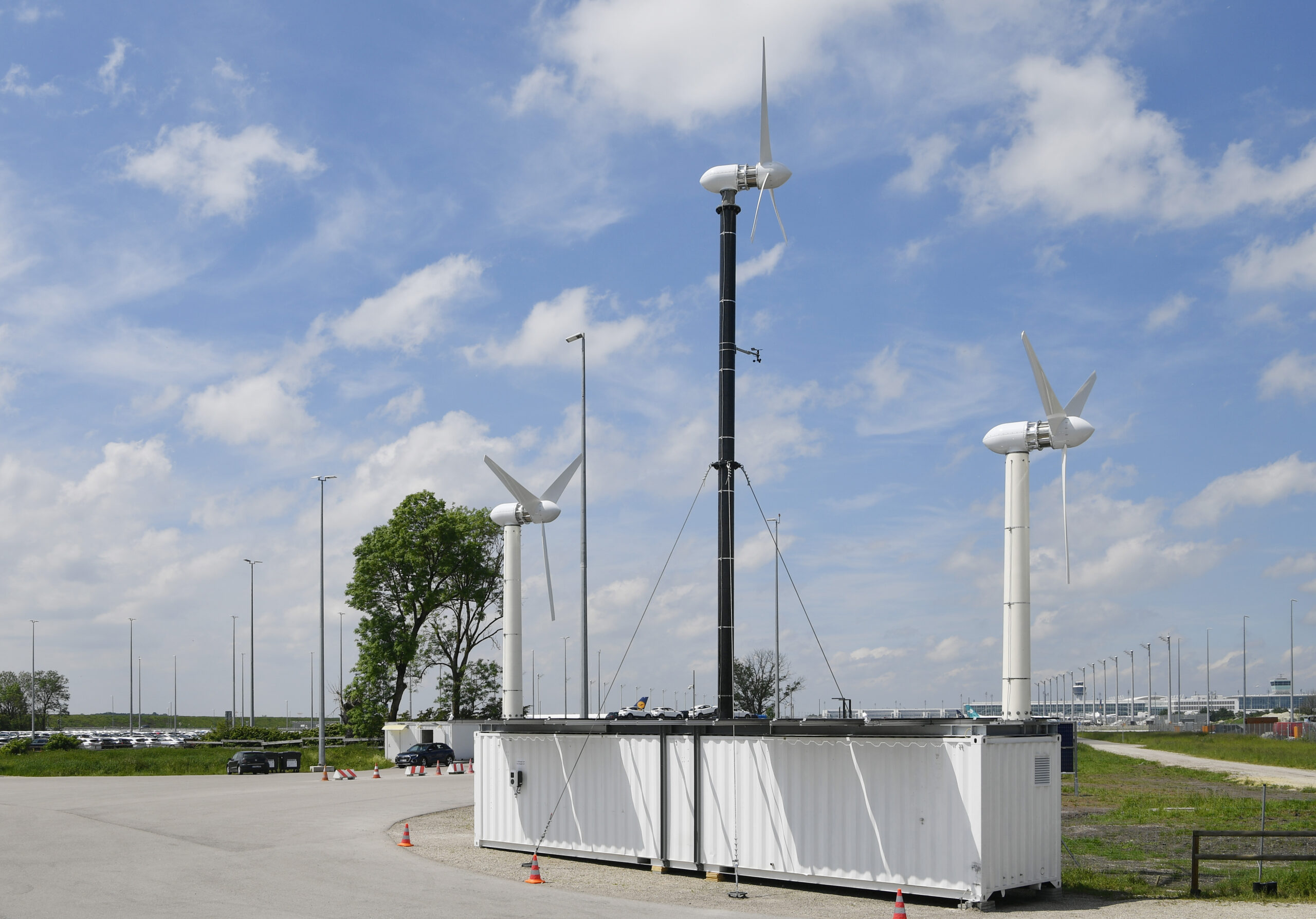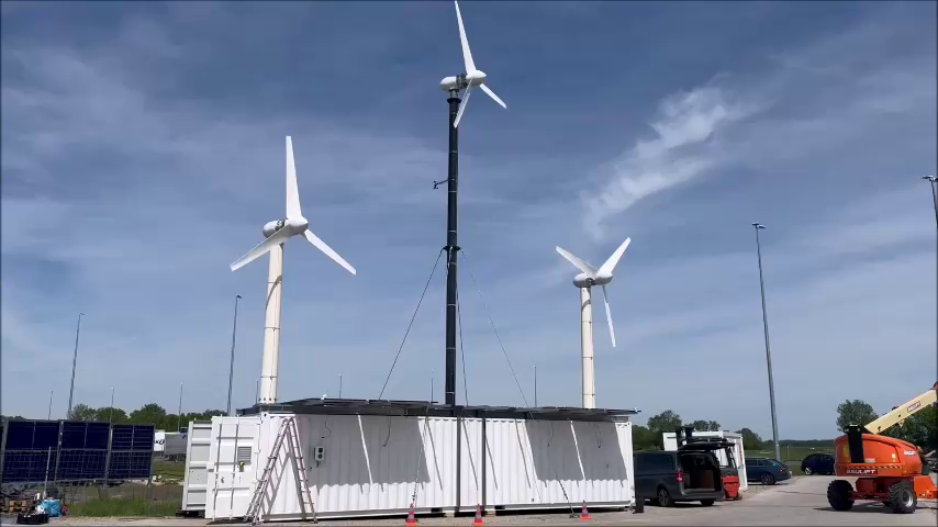 Launch of our new On-grid Mobile Green Center with three of our FlowGen wind turbines in combination with solar and battery storage for charging electric vehicles of the car rental companies at the airport.